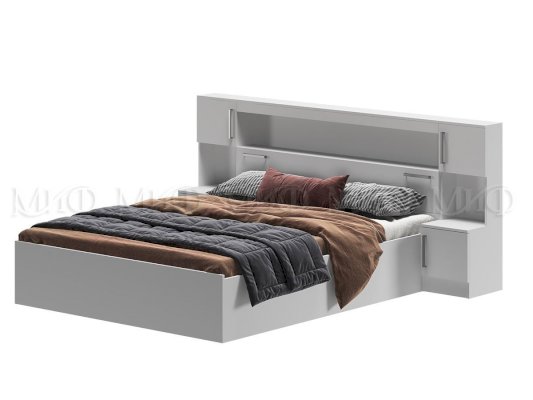 Кровать 1,6м с надстройкой с тумбами Белый