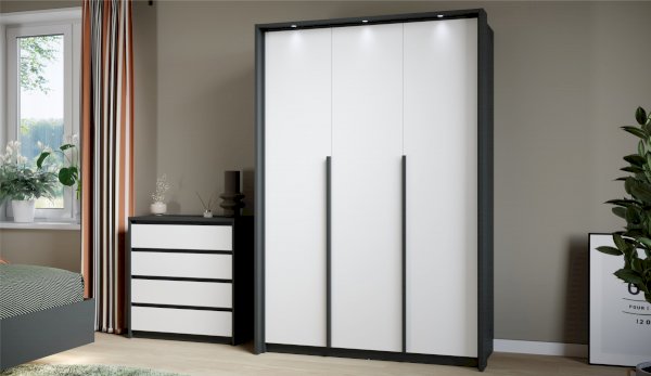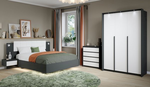 Функциональный распашной щкаф с массивными ручками контрастного цвета включает в себя вместительные полки и отделения со штангой, что позволяет создать систему для хранения вещей различного назначения. Встраиваемая в портал LED подсветка – оригинальное дизайнерское решение и дополнительный источник освещения. Современные цвета декора корпуса и белоснежный фасад добавят в жилое помещение света, уюта и комфорта. Идеально компонуется со всеми модулями системы Мишель.