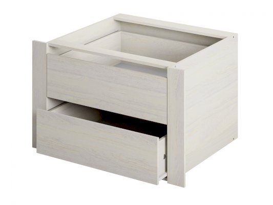 Шкаф можно дополнить встраиваемым модулем с выдвижными ящиками. Модуль устанавливается на любом уровне и в любой секции, но рекомендуемое место размещение - нижняя секция отделения с полками.