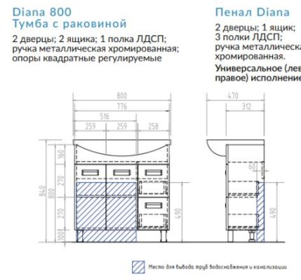 Материал: ЛДСП, ЛМДФ, зеркало, пленка ПВХ, керамика